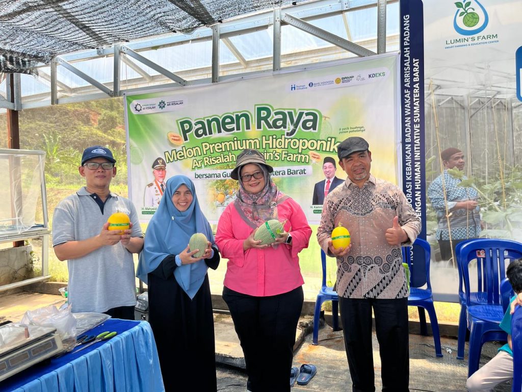 Panen raya Melon Premium Hidroponik Ar Risalah pada Ahad, 12 April 2026, ikut dihadiri oleh Kepala BRMP Buah Tropika Solok, Adha Fatmah Siregar, M.Si., M.Sc., Ph.D, bersama Ketua Tim Kerja PEPT BRMP Tanaman Buah Tropika, Yosi Zendra Joni, Ph.D.